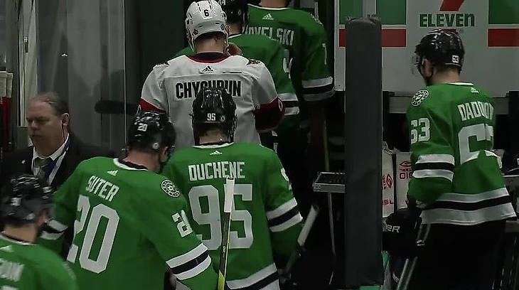 Защитник «Сенаторс» Джейкоб Чикран отправился вместе с хоккеистами «Далласа» в их раздевалку, в то время как игроки «Оттавы» покинули лед в другом месте. Этот эпизод попал в объективы видеокамер.