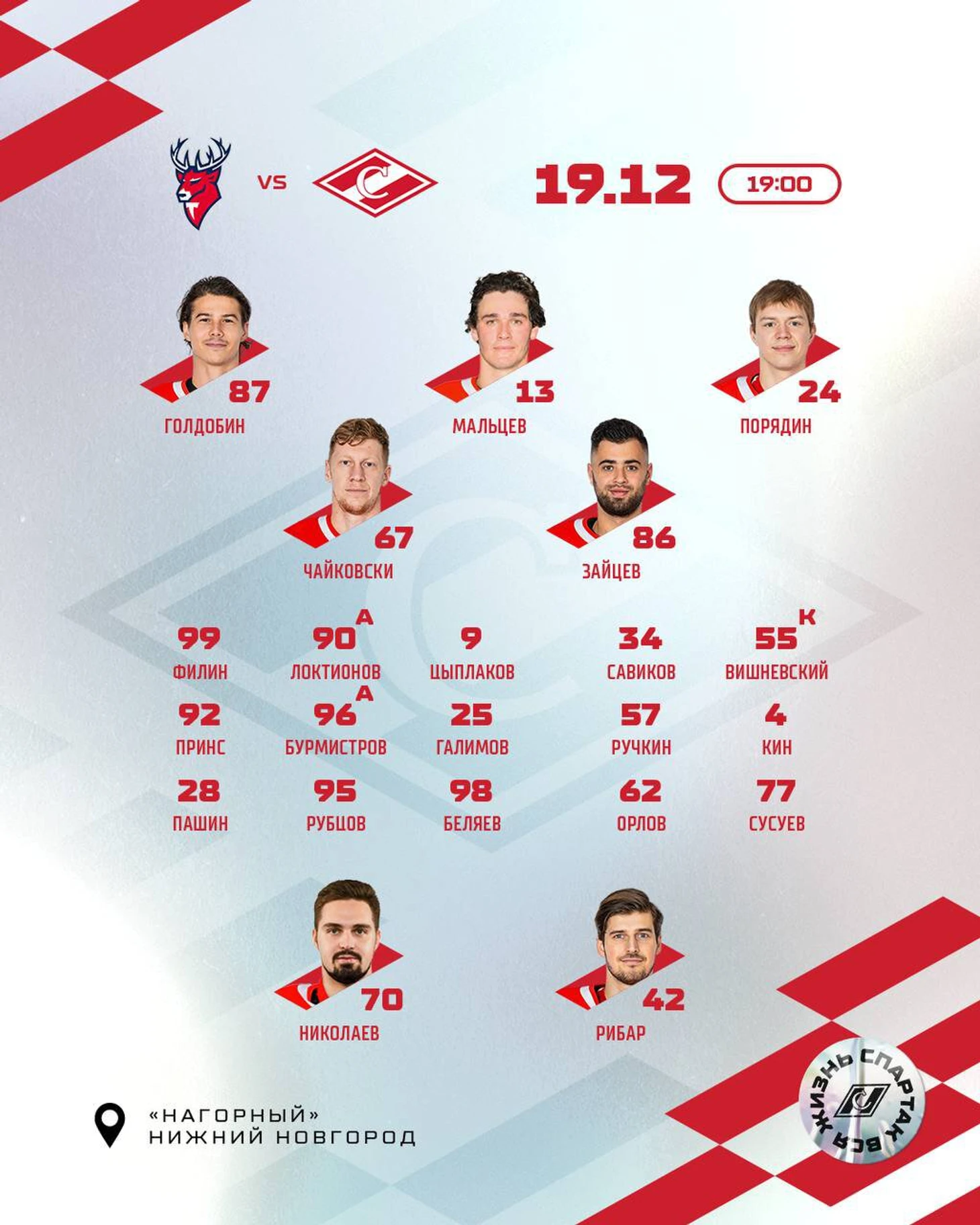 Мальцев сыграет в первом звене «Спартака» с Голдобиным и Порядиным в матче с «Торпедо»