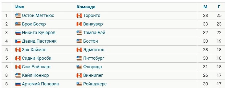 На третьем – форвард «Тампы» Никита Кучеров (22 в 32, сегодня – дубль в ворота «Сент-Луиса»), на четвертом – форвард «Бостона» Давид Пастрняк (19 в 30, сегодня – дубль в ворота «Миннесоты»).