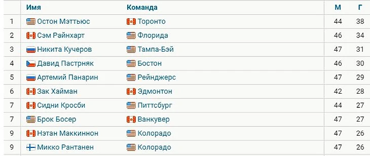 Кучеров уступает только Остону Мэттьюсу («Торонто», 38 в 44) и Сэму Райнхарту («Флорида», 34 в 46).