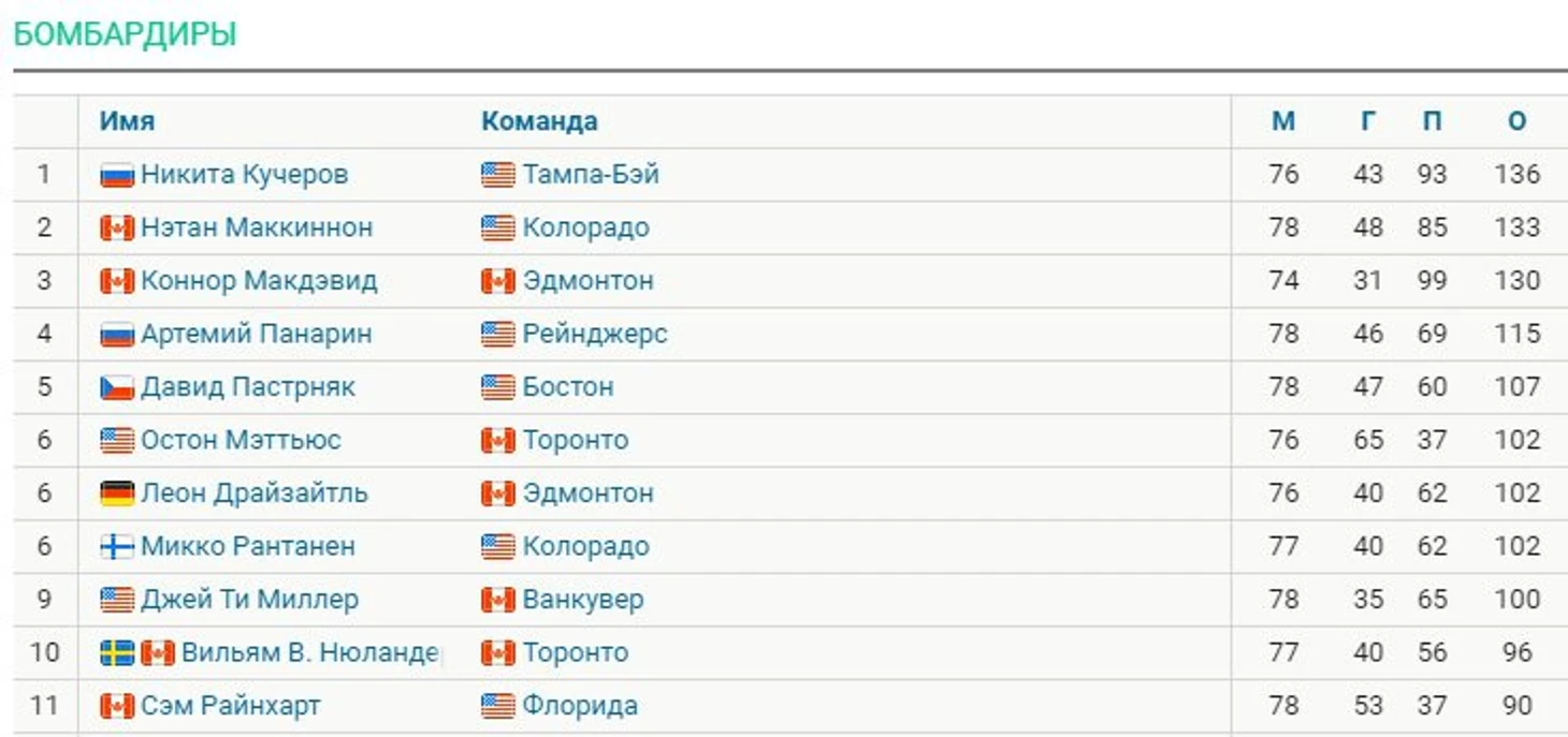31-летний американец впервые в карьере достиг отметки 100 очков за сезон. У него 35 шайб и 65 передач в 78 играх.