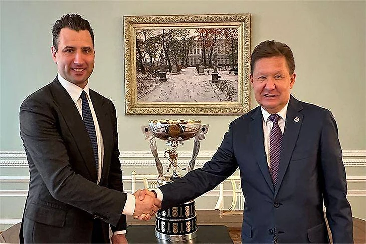 «Cостоялась рабочая встреча председателя правления ПАО «Газпром» Алексея Миллера и главного тренера хоккейного клуба СКА Романа Ротенберга.