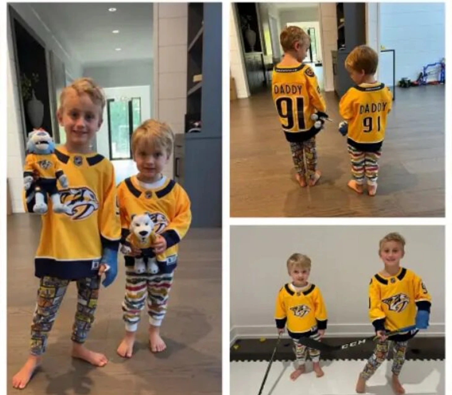 Стивен Стэмкос выложил фото сыновей в свитерах «Нэшвилла» с 91-м номером.