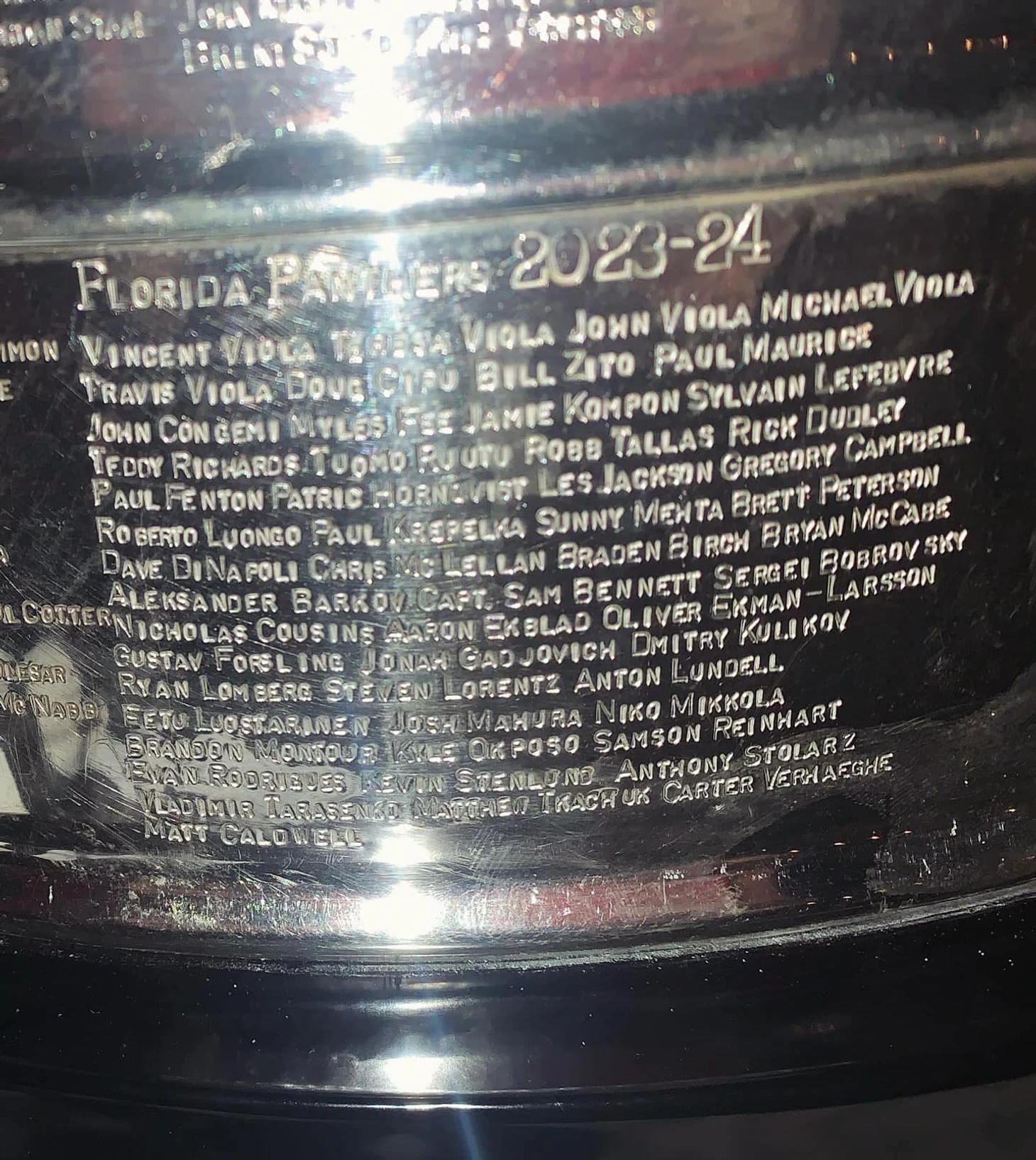 Имена игроков «Флориды» нанесены на Кубок Стэнли.