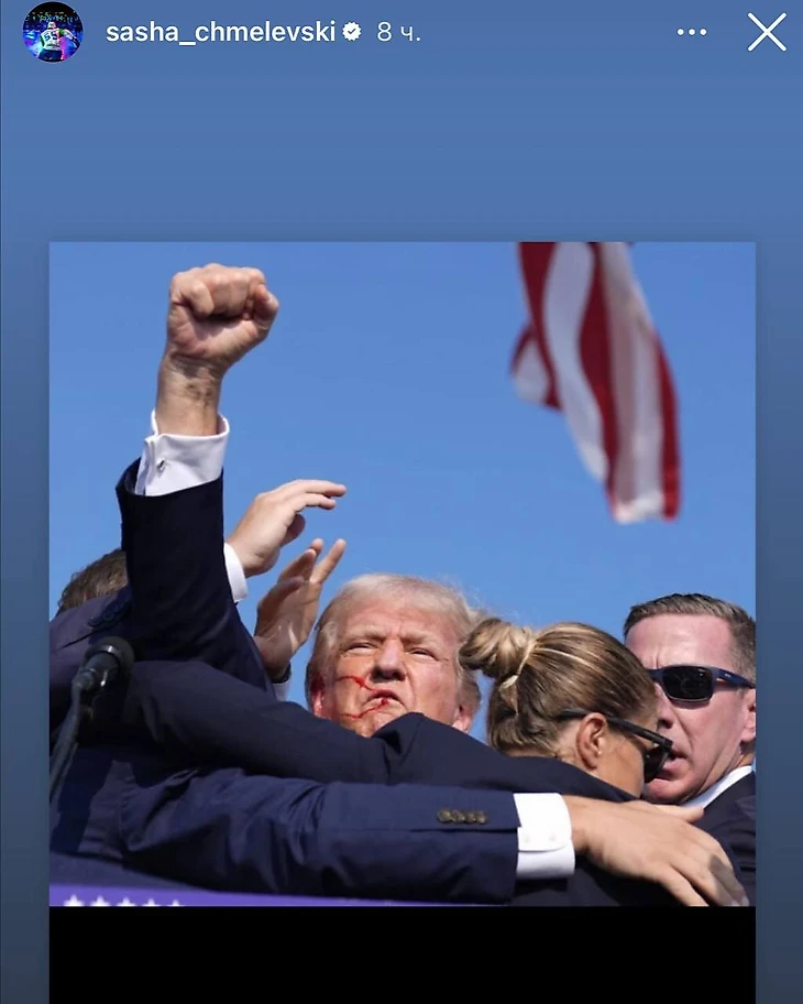 Саша Хмелевски выложил в соцсетях фото Дональда Трампа после покушения.