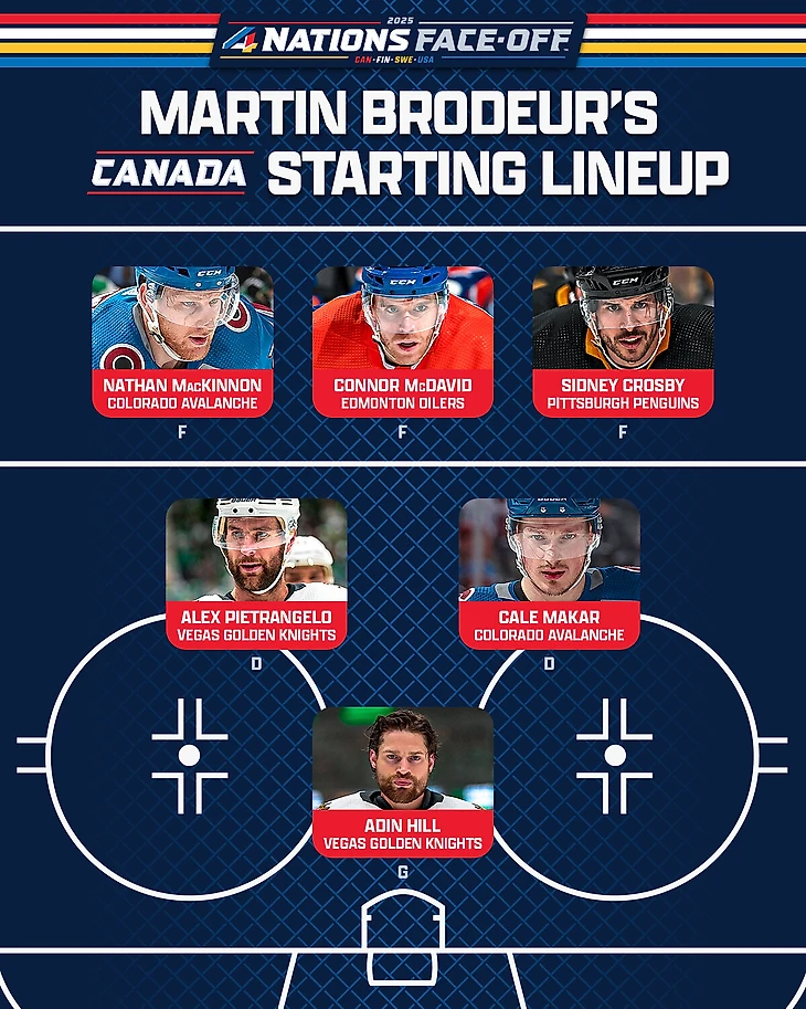 Пару защитников составят Кэйл Макар («Колорадо») и Алекс Пьетранжело («Вегас»). Стартовым голкипером будет Эдин Хилл из «Вегаса».
