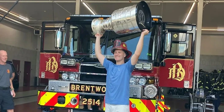 Мэттью Ткачак привез Кубок Стэнли в пожарную часть Брентвуда.