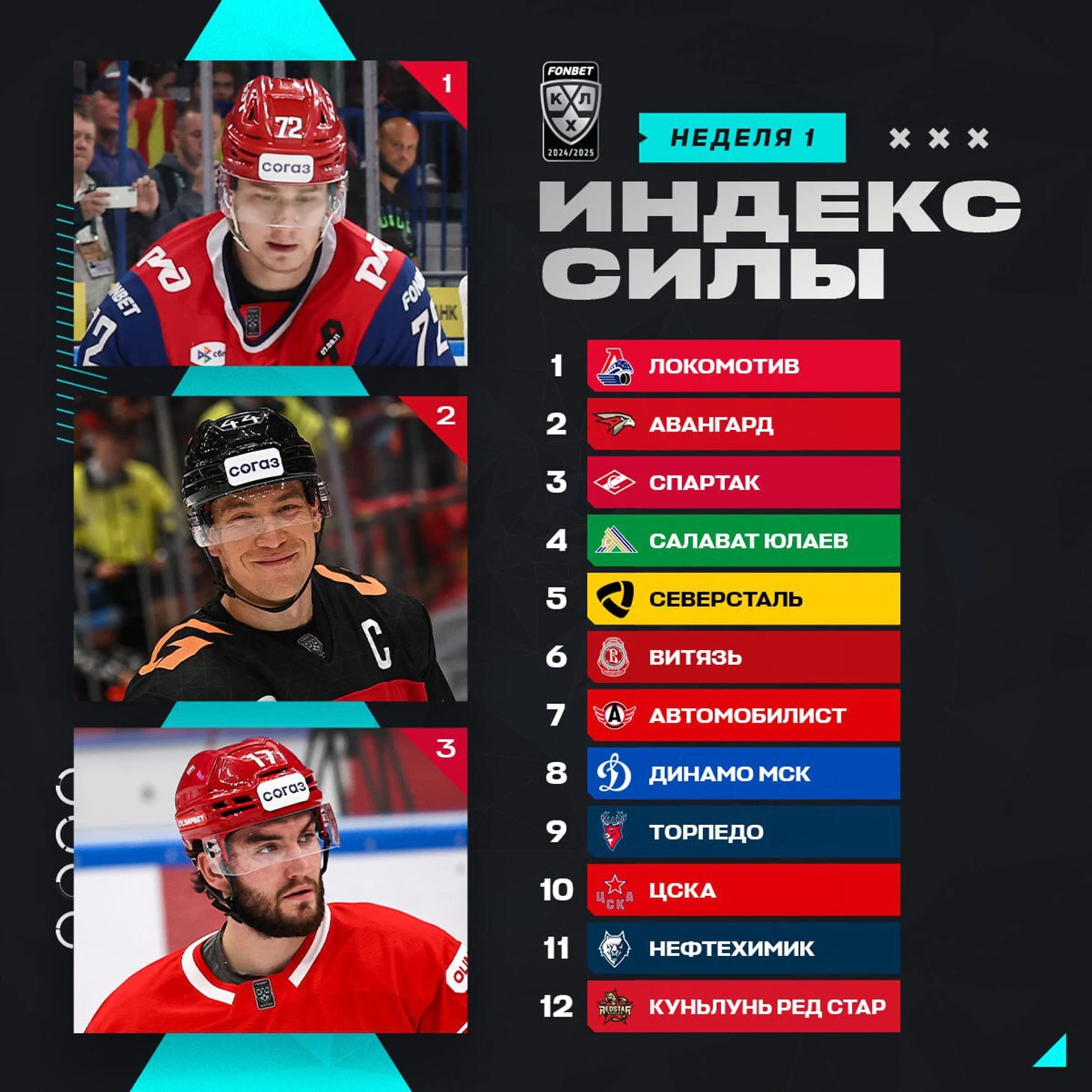 «Локомотив» – 1-й в рейтинге силы от КХЛ по итогам недели. «Авангард» – 2-й, «Спартак» – 3-й, «Витязь» – 6-й, ЦСКА – 10-й, СКА не попал в топ-12