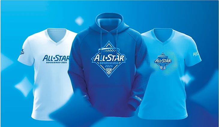 К Неделе звезд хоккея будет выпущена специальная линейка хоккейной атрибутики в фирменных цветах мероприятия с использованием айдентики самого масштабного шоу сезона в КХЛ.