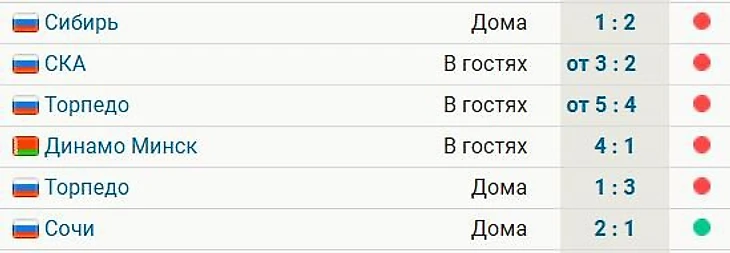Это первая победа клуба из Нижнекамска за 6 последних игр.