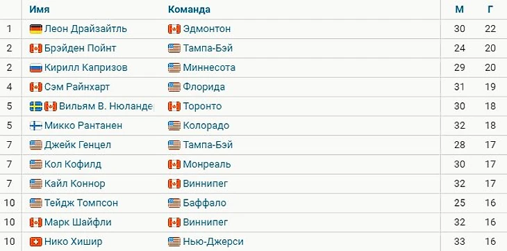 Лидирует форвард «Эдмонтона» Леон Драйзайтль – 22 шайбы в 30 играх. Сегодня он один раз отличился в матче с «Вегасом» (6:3).