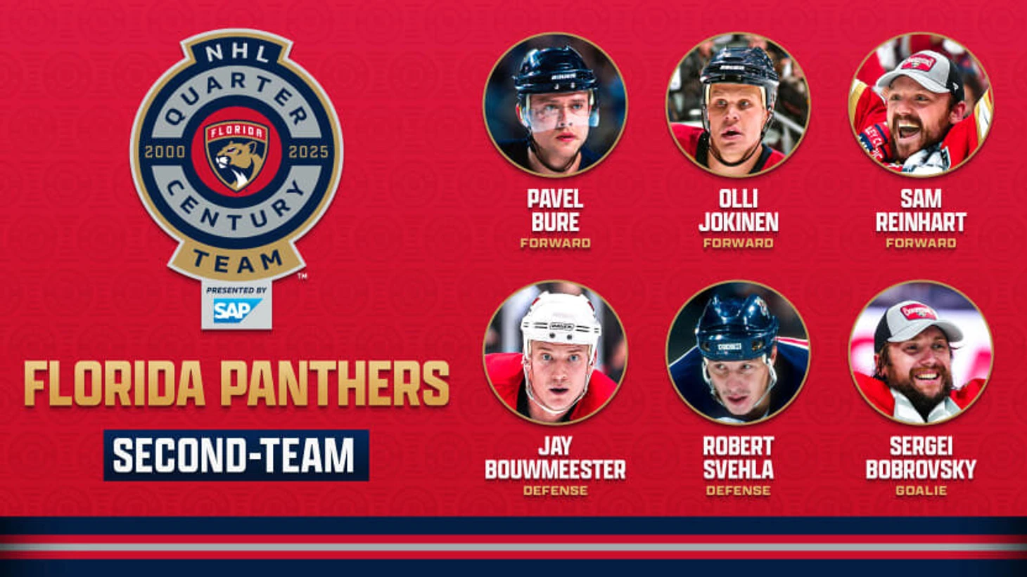 В символические команды «Пантерс» вошли 2 россиянина – вратарь Сергей Бобровский (вторая команда; выступает за южан с 2019 года) и форвард Павел Буре (вторая; с 1999 по 2002 годы).