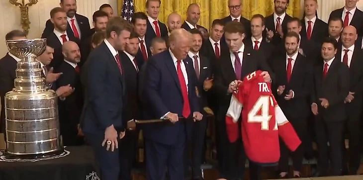 Президент США принял «Пантерс» в Белом доме. В прошлом году южане впервые в своей истории выиграли Кубок Стэнли, обыграв в финале «Эдмонтон» (4-3, 2:1 в седьмом матче).