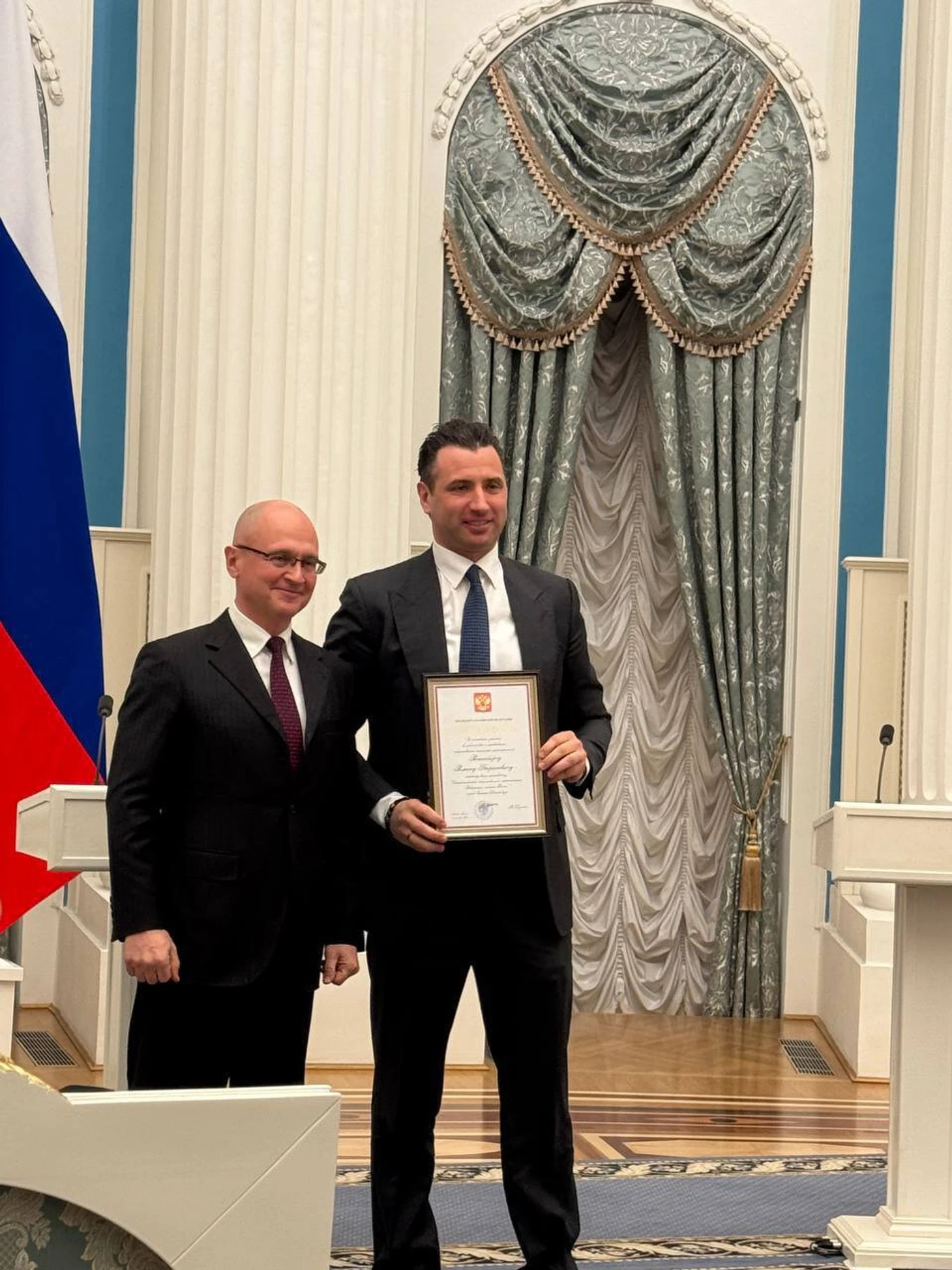 Благодарен Сергею Владиленовичу Кириенко за участие в торжественной церемонии и теплые слова во время вручения благодарности.