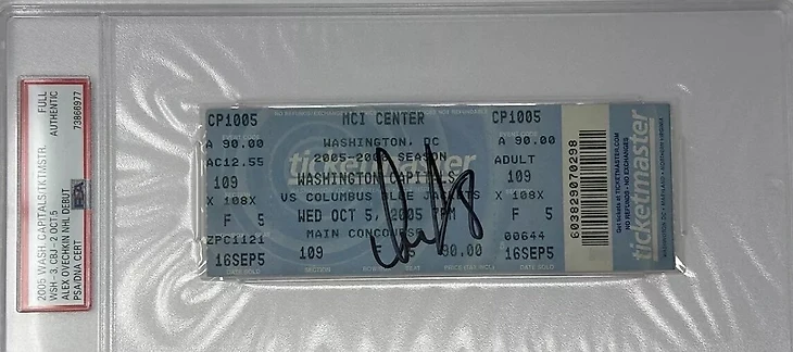 Отмечается, что компания по оценке спортивных реликвий PSA card идентифицировала три билета с дебютного матча Овечкина с автографом хоккеиста и девять – без.