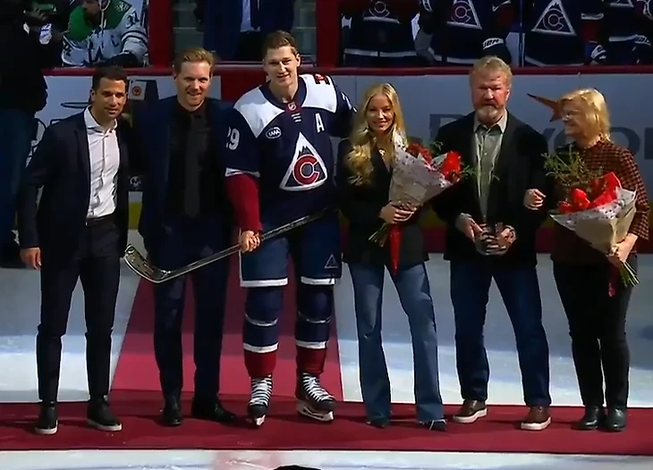 «Колорадо» провел церемонию, посвященную достижению Маккиннона, во время которой капитан «Эвеланш» Габриэль Ландескуг вручил Нэтану золотую клюшку.