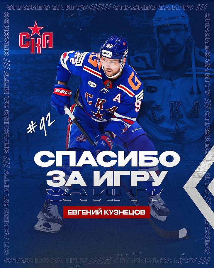 «Хоккейный клуб СКА и нападающий Евгений Кузнецов по обоюдному согласию расторгают контракт.