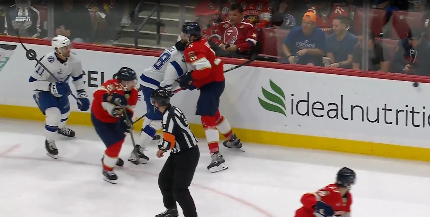 Экблад нанес удар предплечьем в подбородок Хэйгла. Форвард «Тампы» не доиграл матч, защитник «Флориды» не был удален