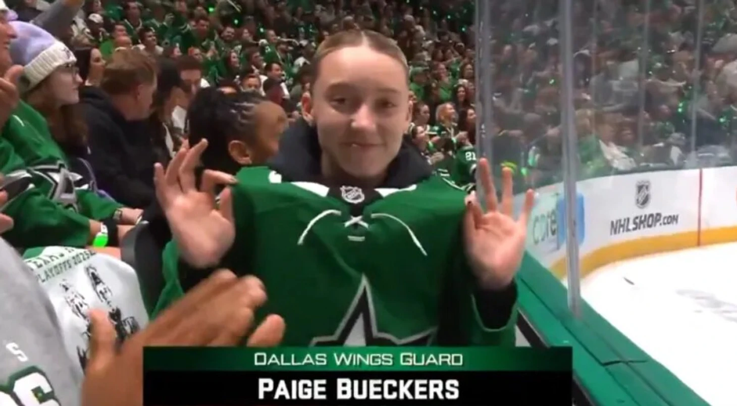 1-й номер драфта женской НБА Пейдж Бекерс посетила матч «Далласа» с «Виннипегом» в плей-офф НХЛ. Она была выбрана клубом «Даллас Уингс»