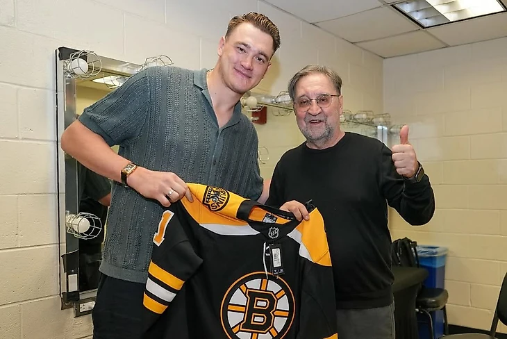 Никита Задоров подарил джерси «Бостона» музыканту Юрию Шевчуку.