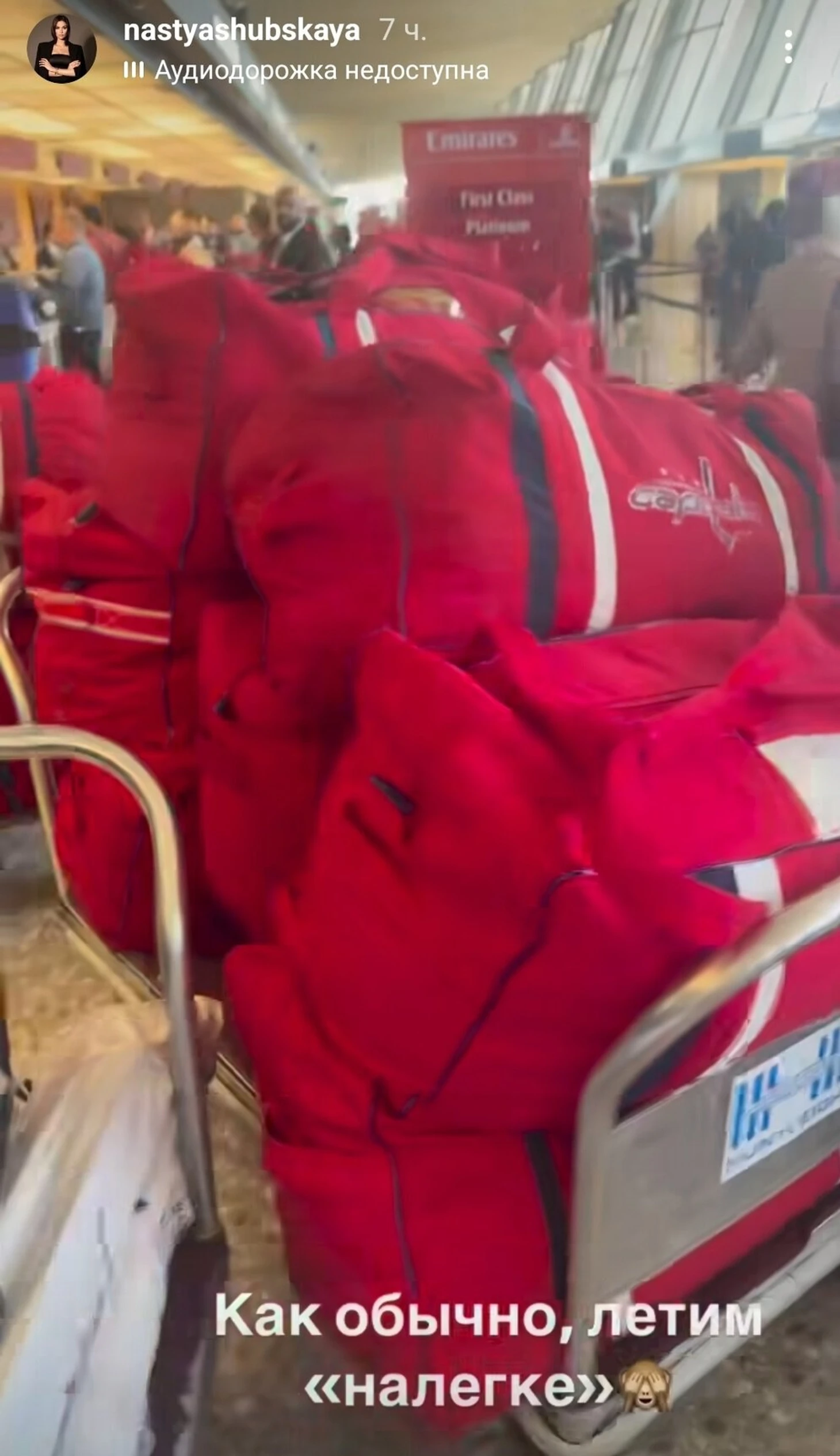 Жена Овечкина выложила видео из аэропорта с тележками с багажом: «Как обычно, летим «налегке»