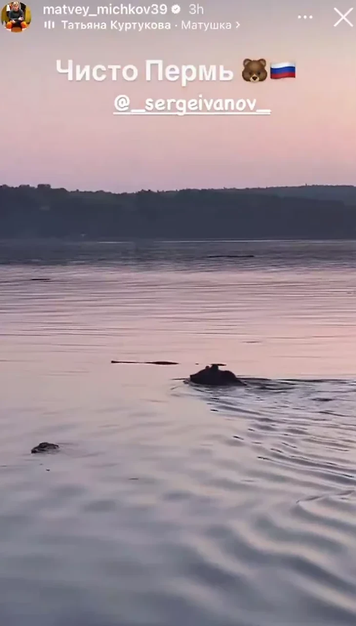 Мичков выложил видео с плывущим медведем, повстречавшимся ему во время отдыха: «Чисто Пермь»