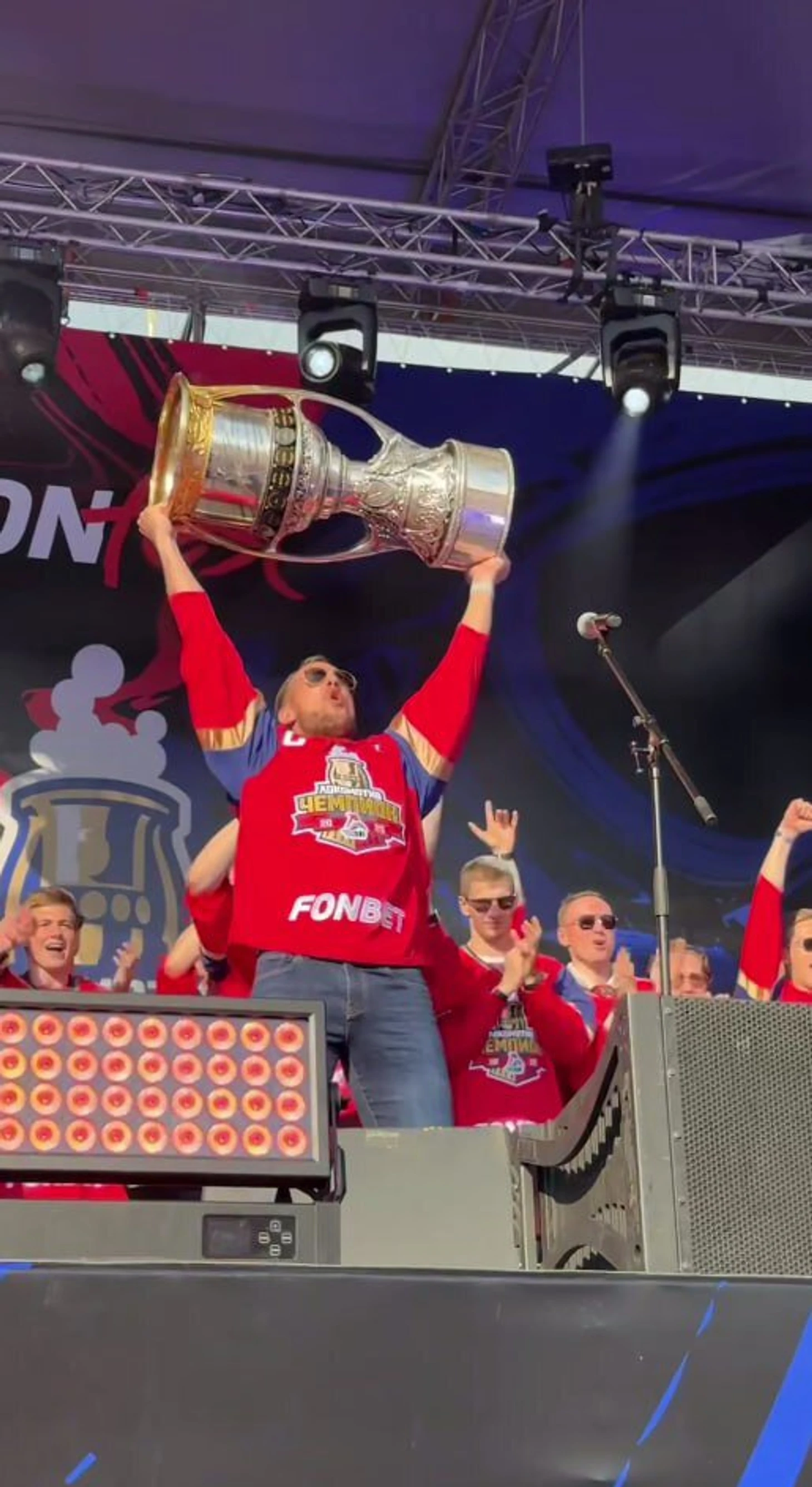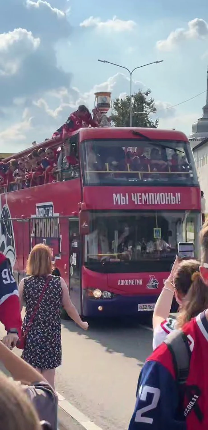 Автобус с командой, выигравшей Кубок Гагарина, стартовал от «Арены-2000» и проследовал по улицам Ярославля до центральной площади города, где расположилась фан-зона со сценой.