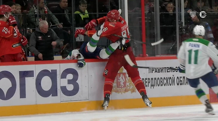 Инцидент произошел на 39-й минуте матча. Защитник «Автомобилиста» Никита Трямкин провел силовой прием против нападающего «Салавата Юлаева» Петра Хохрякова. В результате игрок уфимцев упал на борт возле скамейки запасных «Автомобилиста».