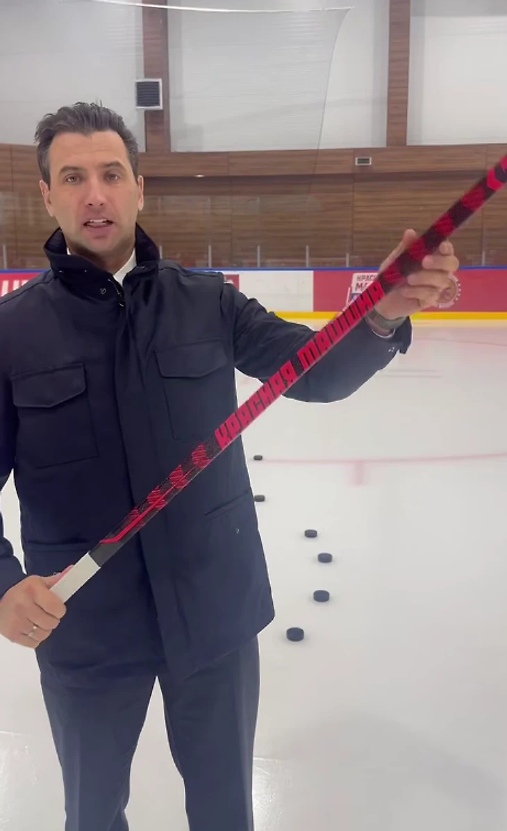 Главный тренер «России 25» и член совета директоров «Динамо» показал первую произведенную клюшку, а затем произвел несколько бросков по воротам и поделился положительными впечатлениями о клюшке.