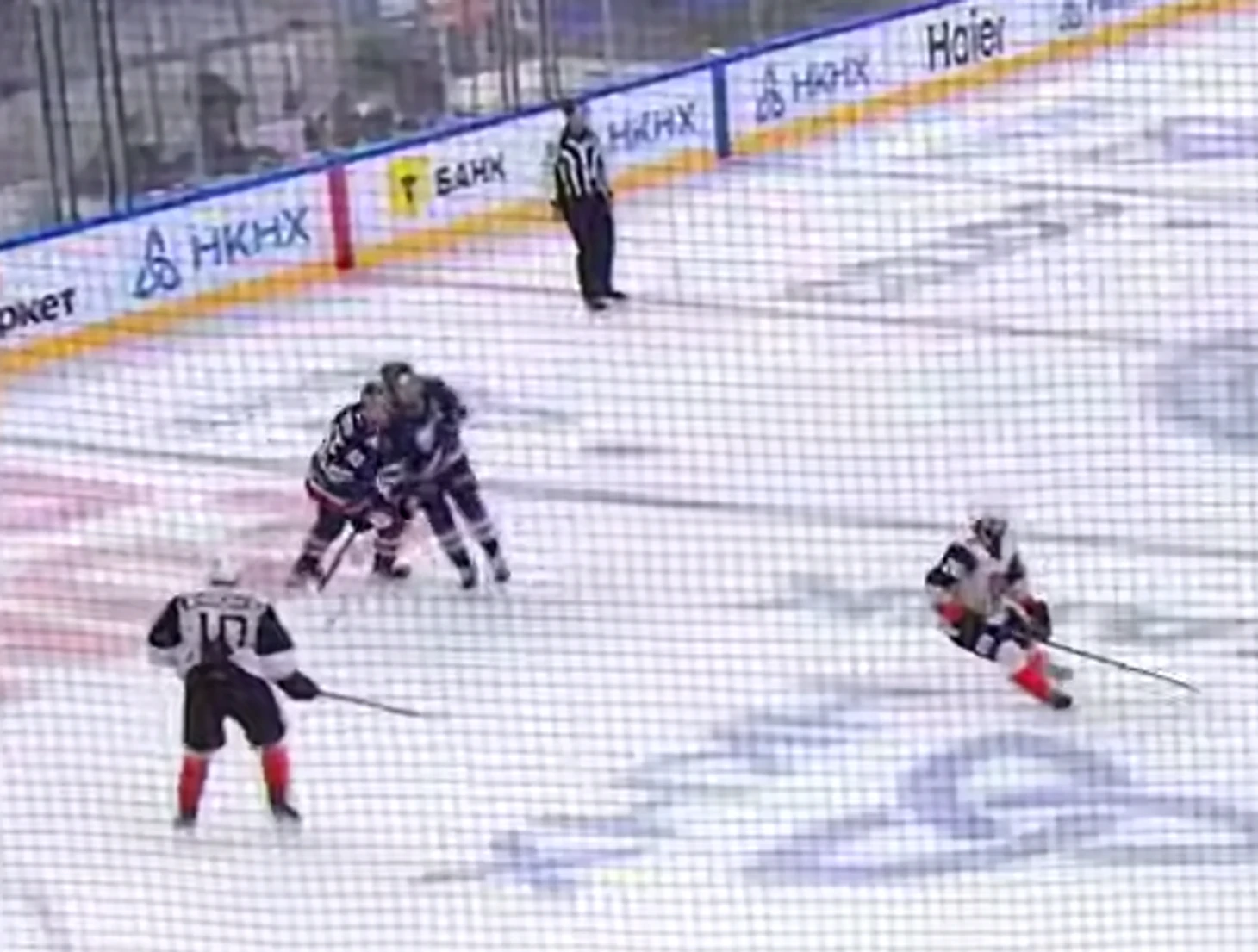 В 3-м периоде защитник нижнекамского клуба Максим Федотов головой врезался в партнера по команде Андрея Белозерова.