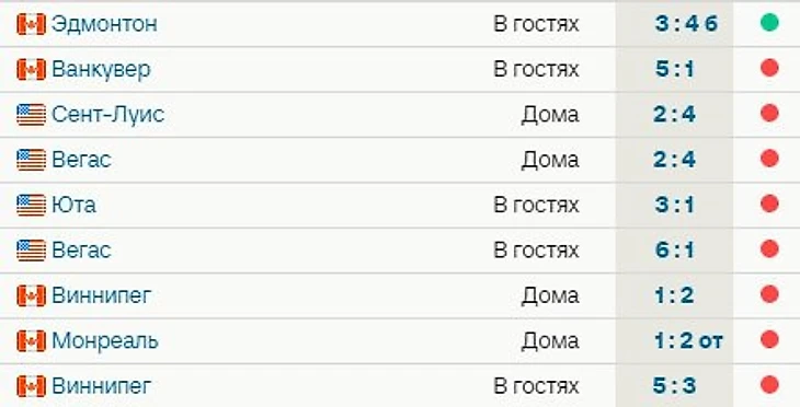 С 3 очками в 9 играх канадский клуб занимает последнее место в Западной конференции и общей таблице лиги.