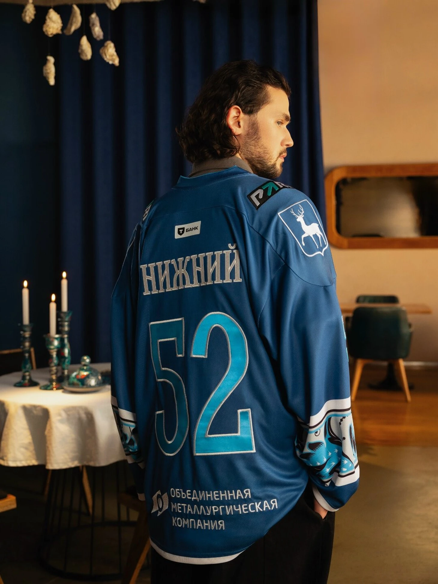 «Монохромное сочетание синего и белого подчеркивает сдержанность, силу и характер. Орнамент объединяет традиции хохломы и современный стиль, превращая классику в актуальный символ Нижегородской земли», – говорится в сообщении клуба из Нижнего Новгорода.