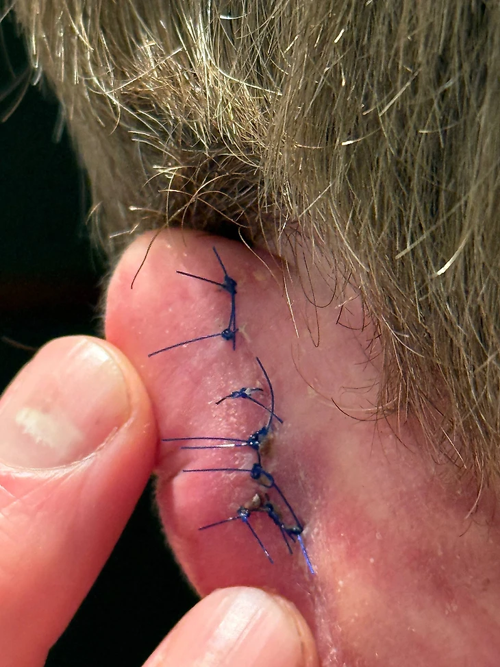 Фото своего зашитого уха хоккеист выложил в телеграм-канале «Раздевалка».