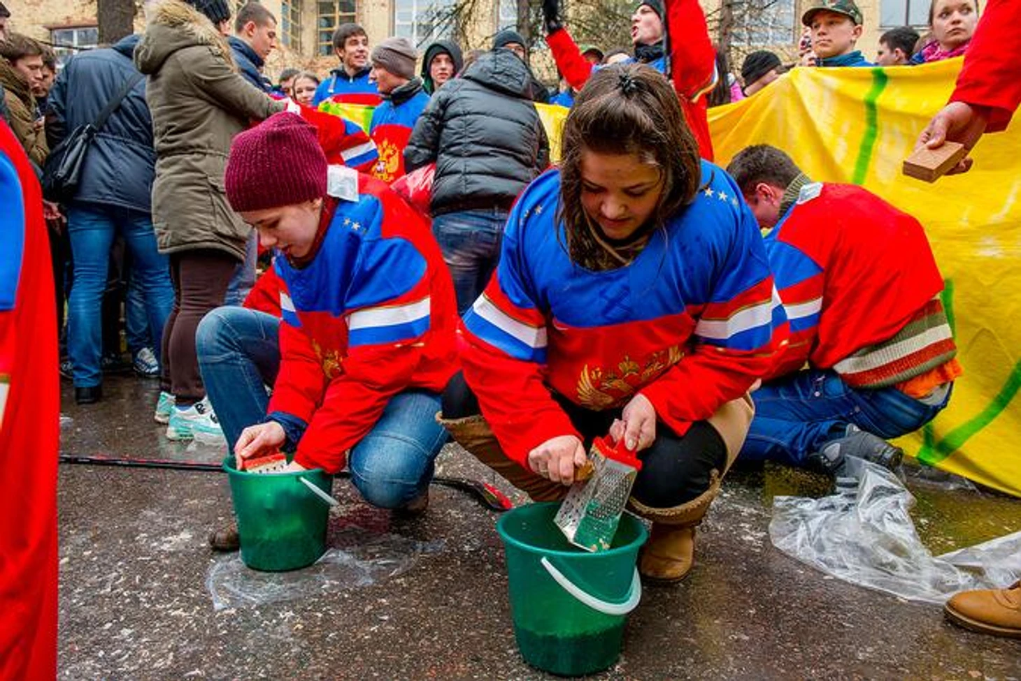 В ходе пикета студенты на скорость перетирали мыло в ведра с именем американского судьи, символизируя фразу – «Судью на мыло!».