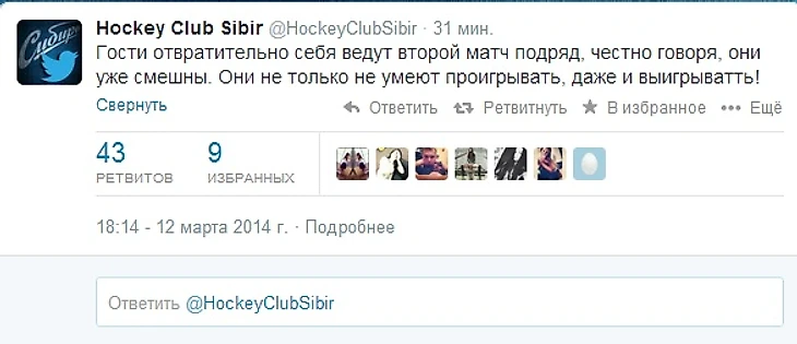 «Сибирь» – «Ак Барс». В твиттере новосибирцев по ходу матча появлялись нелицеприятные записи в адрес казанцев