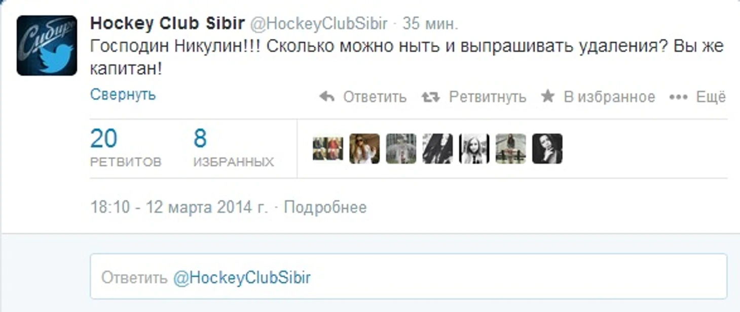 Аналогичные записи в своем твиттере делала и руководитель пресс-службы «Сибири» Мария Левинская.