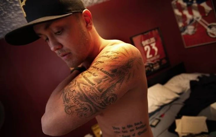 Но на его теле не изображен момент, который изменил его жизнь: жестокие издевательства и унижения, который он перенес в юниорской команде, когда был еще подростком.