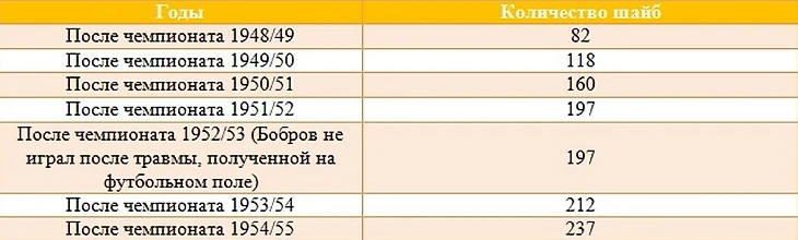 После второго чемпионата страны список снайперов возглавил Всеволод Бобров, у которого по итогам двух чемпионатов было 55 шайб. Это список он возглавлял еще 7 сезонов, поднимая рекордную планку результативности на новую высоту.
