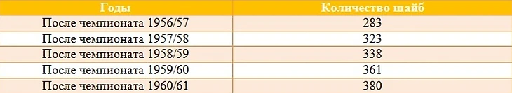 После чемпионата 1955/56 гг. появился новый рекордсмен. И хотя Всеволод Бобров еще продолжал выступать, его обогнал Алексей Гурышев, у которого была 251 шайбы. В течение следующих пяти лет нападающий «Крыльев Советов» поднимал и поднимал планку рекорда на новые высоты.
