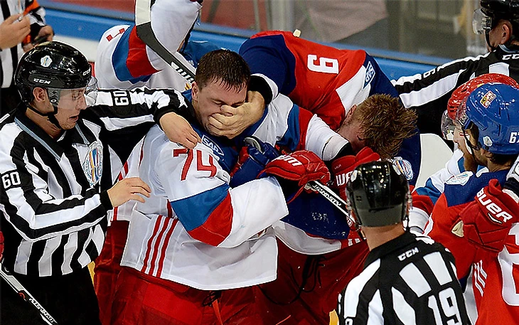Во-вторых, никуда не делись наши проблемы. Выход из зоны временами дается настолько тяжело, что страшно представить, как то будет в игре с канадцами или со сборной молодых звезд Северной Америки. С большинством стало еще хуже чем было — в первой игре казалось, что идет шлифовка, сегодня почти все рухнуло, состав бригад будет меняться. Непонятно, что делать с четвертым звеном и конкретно с ролью Ивана Телегина: армеец должен доминировать физически, а этого нет. Ну и дисциплина — удалений было много, это не могло не сломать игру. Позитивному заряду от гола Кучерова просто не дал разойтись Николай Кулемин, схвативший фол.