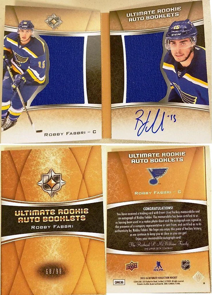 Ultimate Rookie Autograph Booklet Relics, 17 карт. Еще одна буклетная подсерия. Посвящена она на этот раз новичкам. Два куска, два фото, дизайн достаточно банальный, параллелей с патчами нет. В общем, не знаю, зачем выпускать такое – буклет ради буклета.