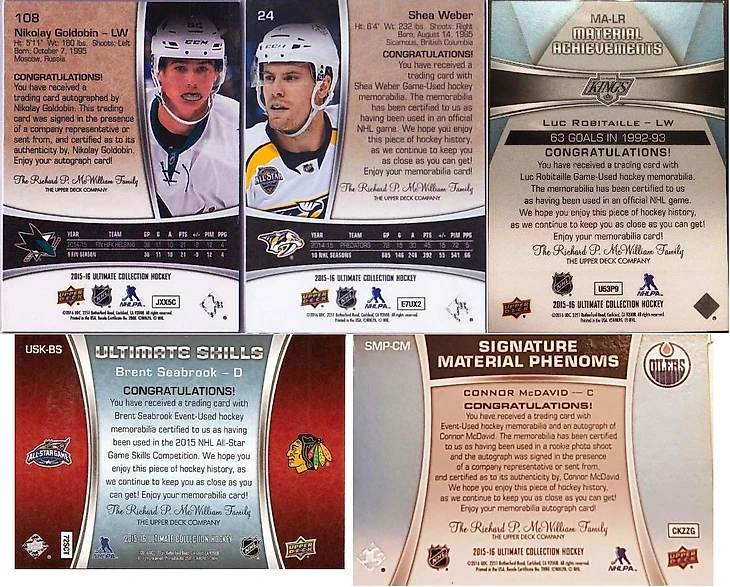 Signature Material Achievements. 9 аналогичных карт содержат также автограф игрока. Их тираж от 40 до 10 экз. И там, и там можно найти карты Патрика Руа.