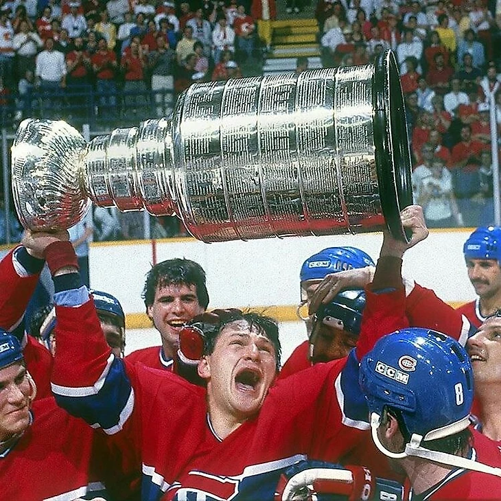 Клод Лемье с одноклубниками празднуют победу «Монреаля» в финале Кубка Стэнли над «Калгари». 1986 год.
