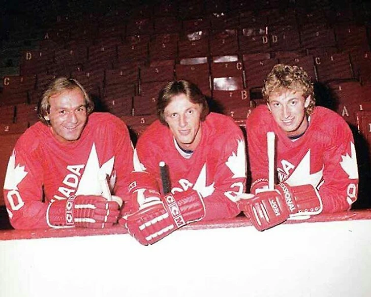 Ги Лефлер, Майк Босси и Уэйн Гретцки на Кубке Канады. 1981 год.