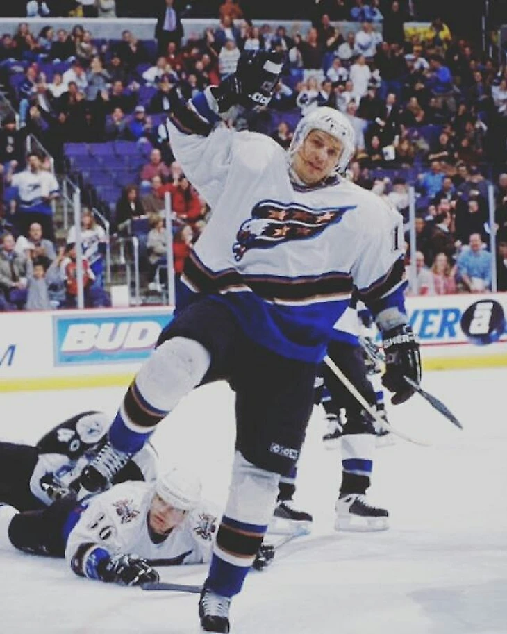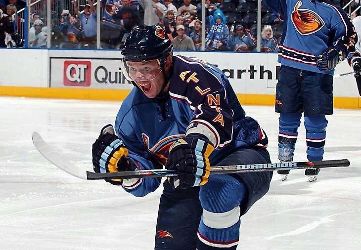 Илья Ковальчук празднует заброшенную шайбу в матче «Атланты». 2007 год.