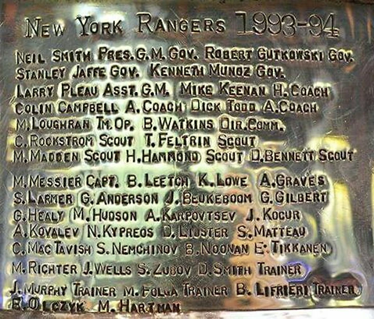 Имена игроков чемпионского состава «Рейнджерс» на Кубке Стэнли. Сезон 1993/94.
