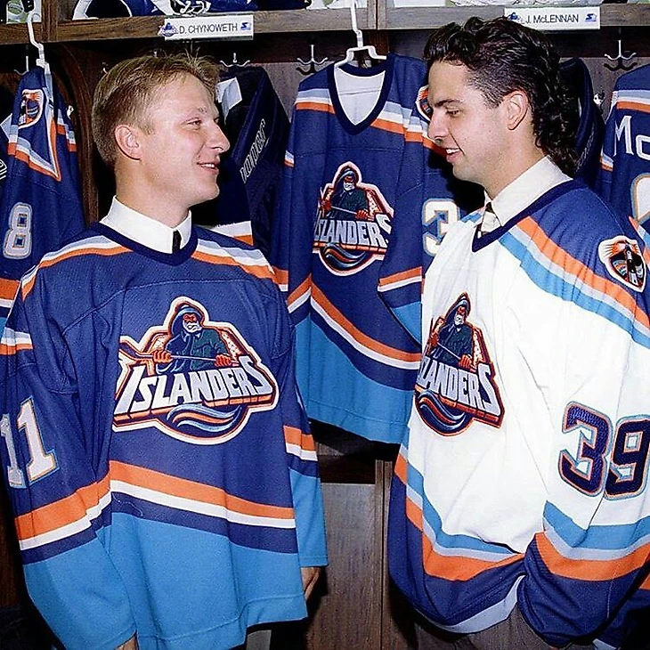 Дарюс Каспарайтис и Трэвис Грин в форме «Айлендерс».