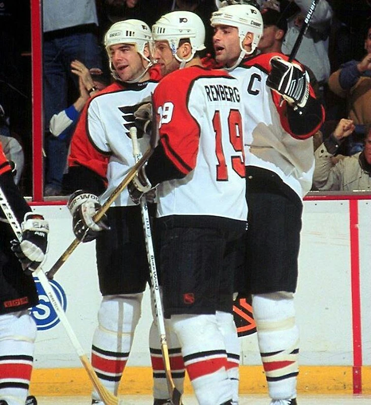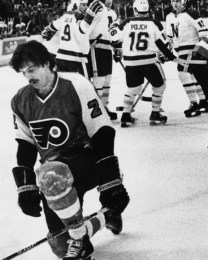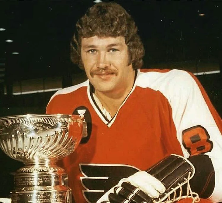 Рик Маклиш в форме «Филадельфии». На счету игрока победный гол в серии финала Кубка Стэнли-1974 с «Бостоном».