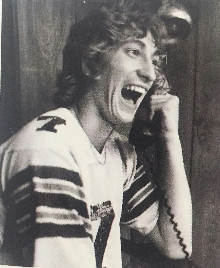 Молодой Уэйн Гретцки разговаривает по телефону.