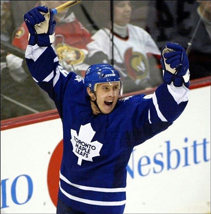 Александр Могильный празднует заброшенную шайбу в матче «Торонто».
